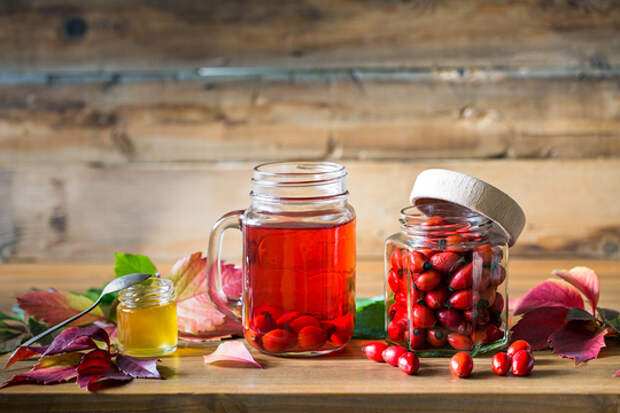Чай из шиповника и сушеной рябины: